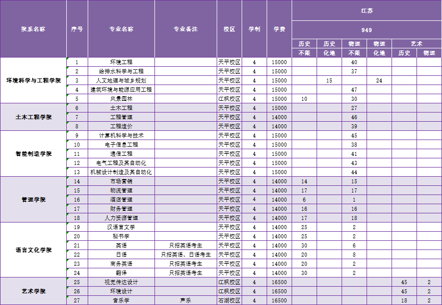 苏州科技大学天平学院2021年江苏省专业分组计划及收费一览表