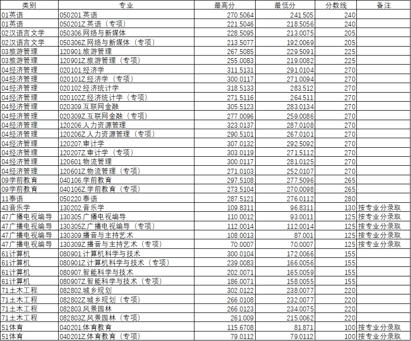昆明文理学院2022年专升本录取分数表(普通加专项)