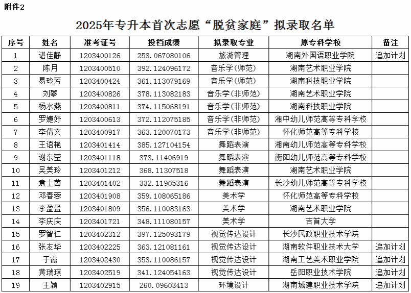 2.2025年专升本首次志愿“脱贫家庭毕业生”拟录取名单
