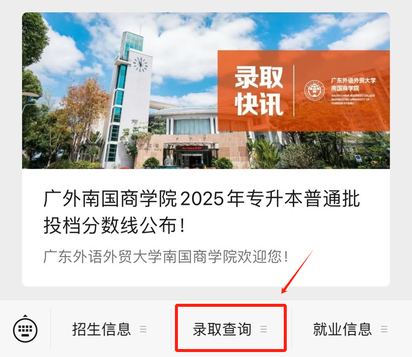 普通批次录取查询将于5月23日19:00正式开通,请考生可通过“广外南国招生就业指导处”微信公众号“录取查询”栏目查询录取结果。