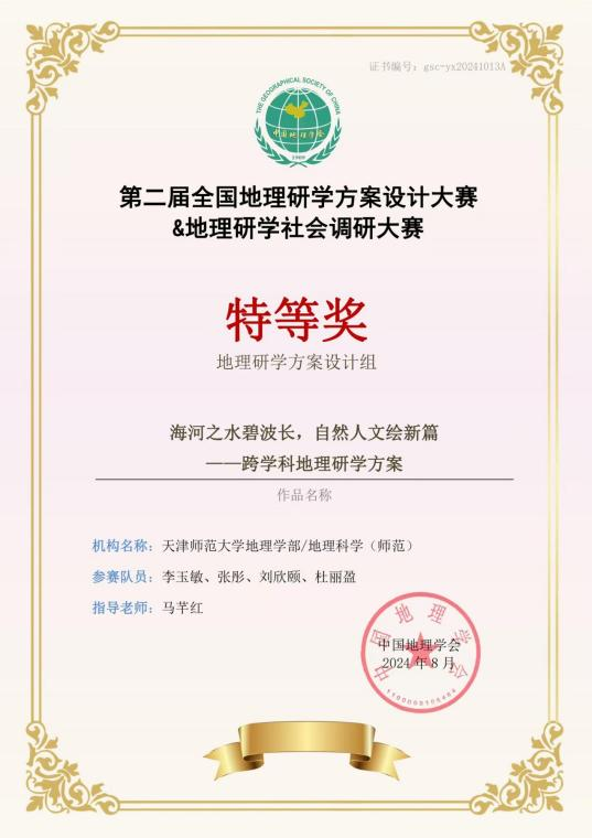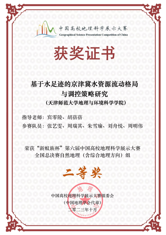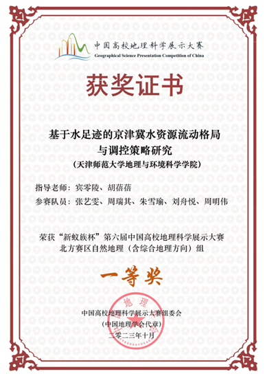 实践是检验真理的唯一标准,对科研的浓厚兴趣推动我参加了中国高校地理科学展示大赛,并担任第一负责人,和成员们一起获得了北方赛区一等奖和全国二等奖。