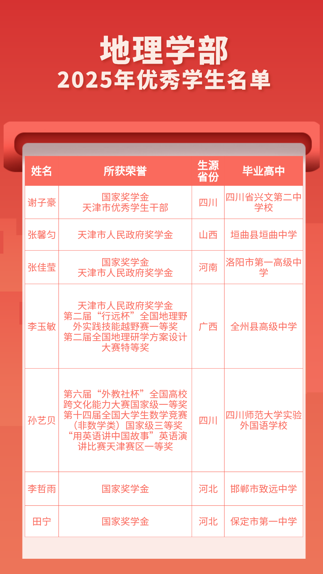 谢子豪来自地理科学(师范)专业2101班,获“天津市优秀学生干部”称号、国家奖学金。四年学习中,他用行动诠释了“师范生”的责任与担当。
