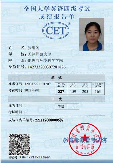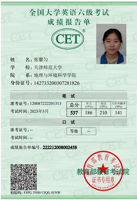 张艺雯,共青团员,地理学部地理科学(师范)专业2021级本科生,目前已考入南京大学地理与海洋科学学院自然地理学专业攻读硕士学位。