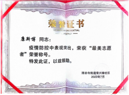 作为班级学习委员、学部首届青马班学员,多重身份也锻炼了工作能力,多次获得校级优秀学生干部、校级“五四”优秀共青团员,为学部和班级建设增光添彩。