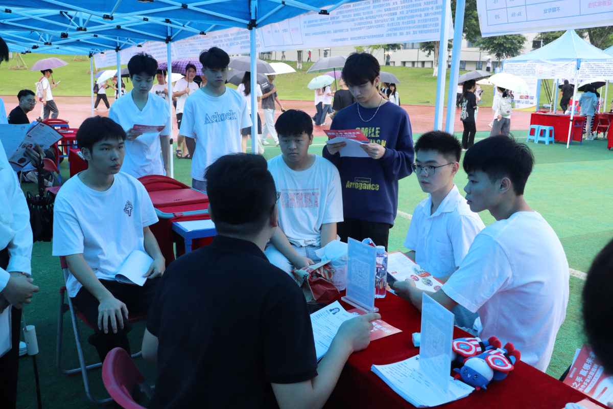 为全方位服务用人单位和毕业生需求,活动现场设置七大特色服务专区,包括校企合作洽谈区、政策宣传区、职场加油站、征兵宣传、专升本咨询、直播带岗、反诈宣传等专区,各学院依托校企合作洽谈区深入活动现场,与企业代表洽谈,积极推介毕业生;每个区域均安排教师和志愿者为毕业生提供简历优化、面试指导、政策解读等一站式服务,营造贴心、便捷的活动环境。