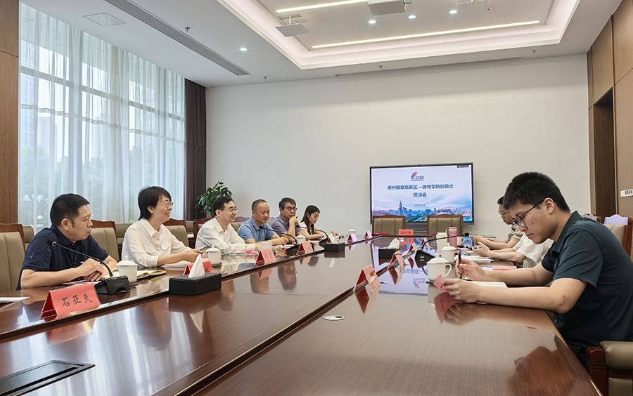 黄震介绍了常州市国家高新区(新北区)建设发展情况,从常州市人才政策、高校毕业生引进政策、高校合作支持政策等维度进行了推介,表达了加强合作交流的意愿。