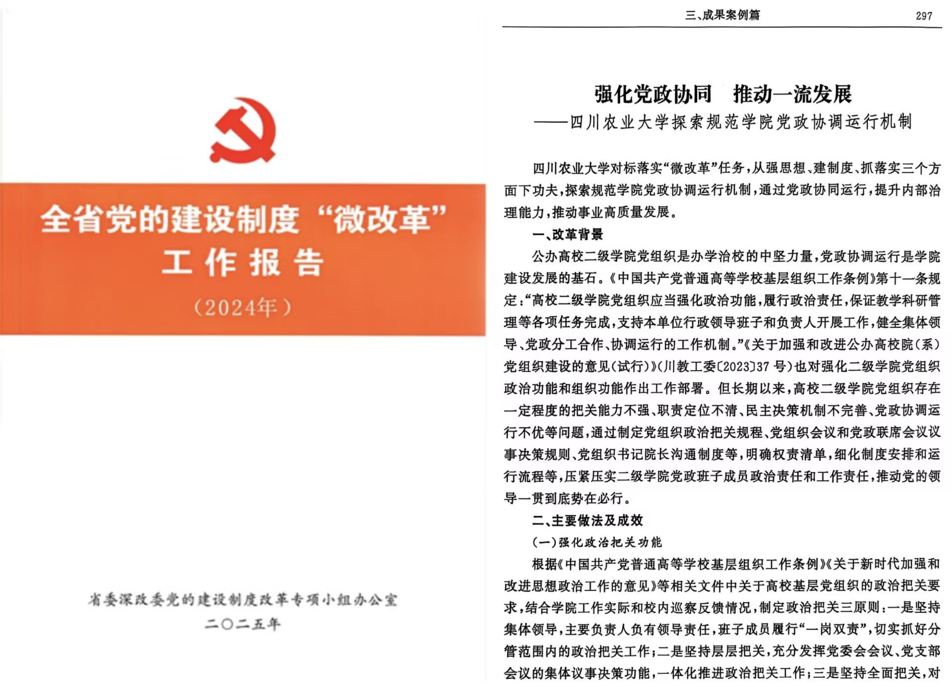 近日,省委深改委党的建设制度改革专项小组办公室印发《全省党的建设制度“微改革”工作报告(2024年)》,我校承担的课题《探索规范公办高校二级学院党政协调运行机制》研究报告成功入选。