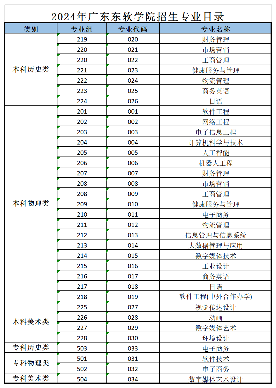 2024年广东招生专业目录