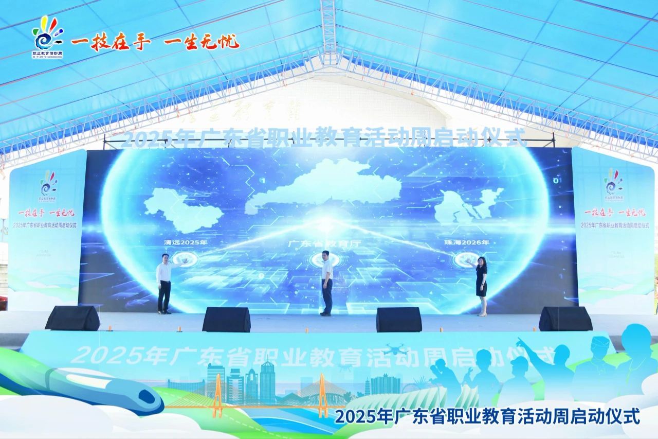 5月16日,2025年广东省职业教育活动周隆重开幕,活动周启动仪式在清远举行,由清远市教育局承办。省教育厅、省委宣传部、省委网信办、省人力资源社会保障厅、省工业和信息化厅、省农业农村厅、省国资委、省总工会、团省委、广东中华职教社等单位代表出席了启动仪式,清远市政府领导,各地级以上市教育局负责人,全省职业院校代表、合作企业代表和广东省职业技术教育学会、广东省成人教育学会、广东教育国际交流协会等代表出席活动。活动特别邀请了香港特别行政区、澳门特别行政区职业教育代表参加,共同探讨推进粤港澳大湾区职业教育交流协作。