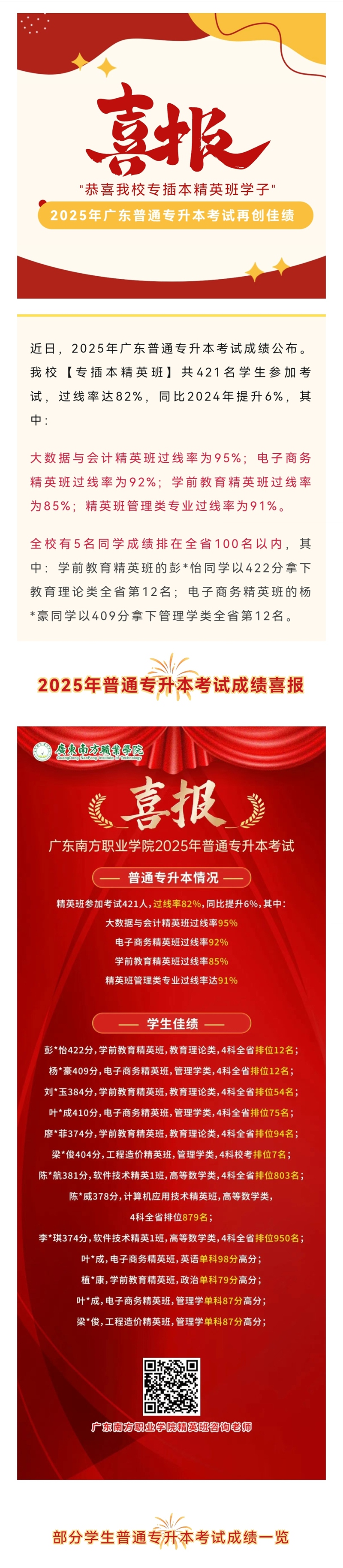 喜报!我校2025年普通专升本考试再创佳绩,最高全省排12名!