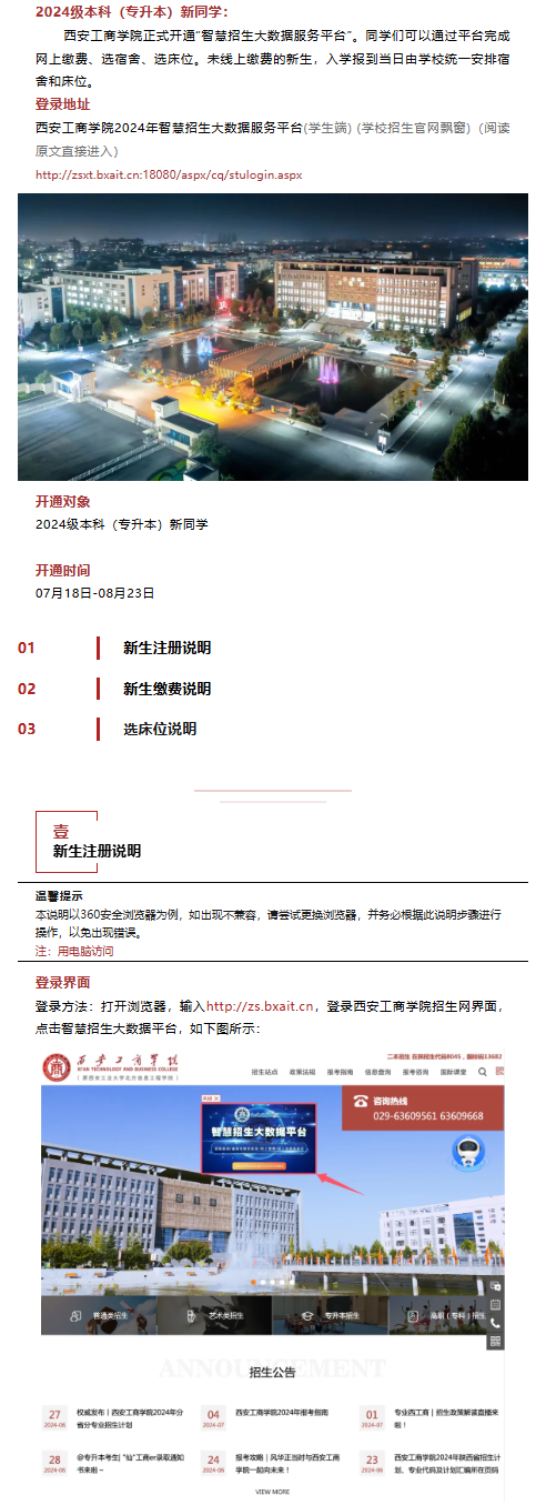 @2024级本科(专升本)新同学|西安工商学院网上自助服务系统开通啦,快来看吧!
