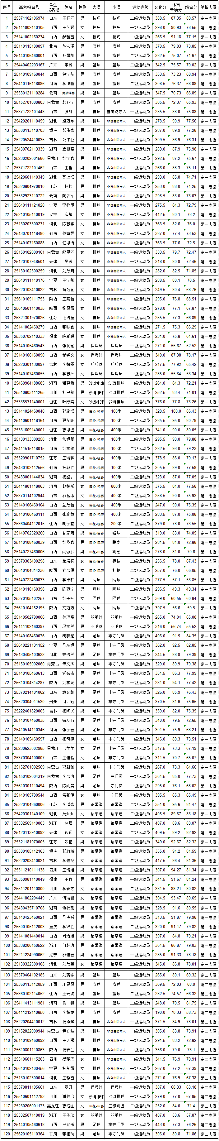 中北大学2025年运动训练专业计划招生120人。根据国家体育总局办公厅 教育部办公厅《关于印发<2025年普通高等学校运动训练、武术与民族传统体育专业招生管理办法>的通知》文件精神和《中北大学2025年运动训练专业招生简章》规定,结合学校教学、组队和项目发展以及社会需求,依据招生计划和报考我校考生实际情况,经学校本科招生工作领导组依据录取原则,按照志愿顺序及综合成绩择优确定拟录取名单,现对符合条件的拟录取考生名单进行公示(详细名单附后)。
