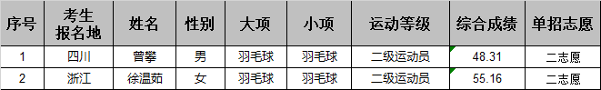 根据《2025年普通高等学校运动训练、武术与民族传统体育专业招生管理办法》(体科字〔2024〕256号)和《成都大学2025年运动训练专业招生简章》等相关文件要求,拟录取符合条件的考生2人,现将拟录取名单予以公示,具体名单如下。