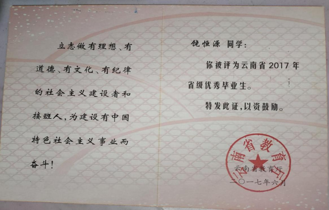 2023年4月被丽江文化旅院学院授予“基层就业卓越毕业生”荣誉称号;