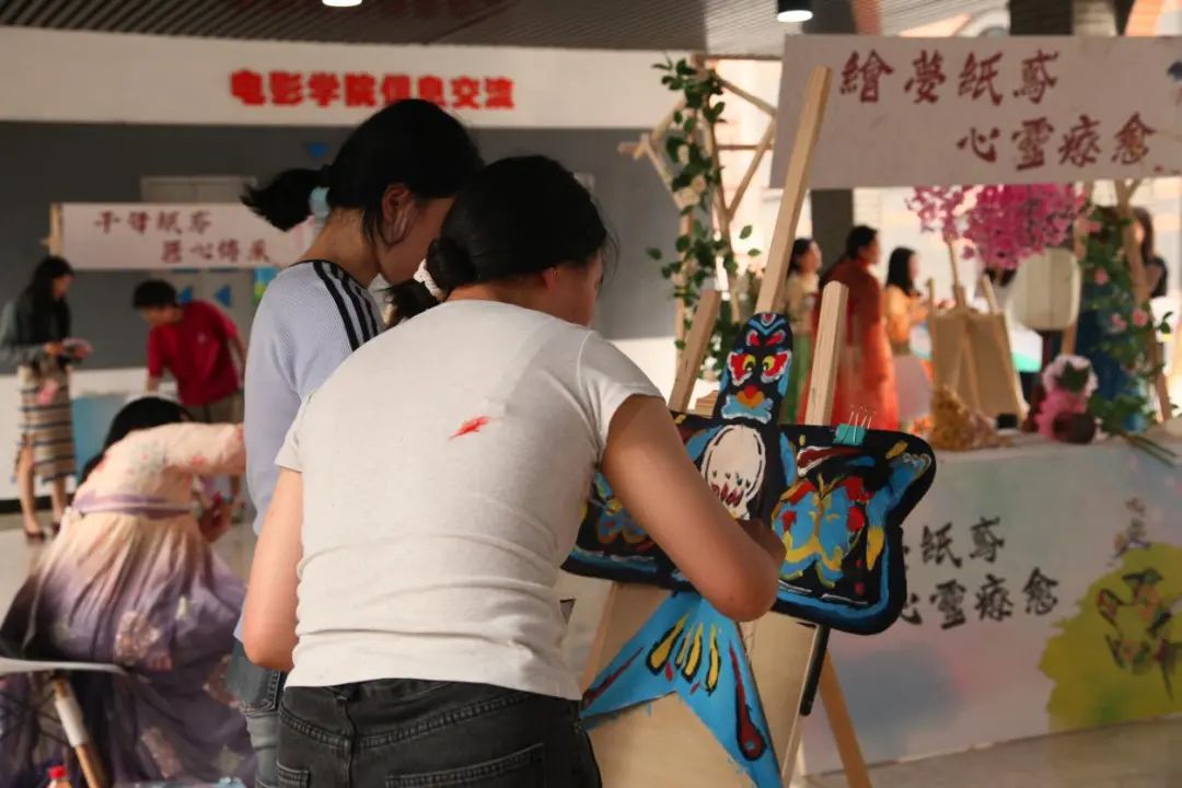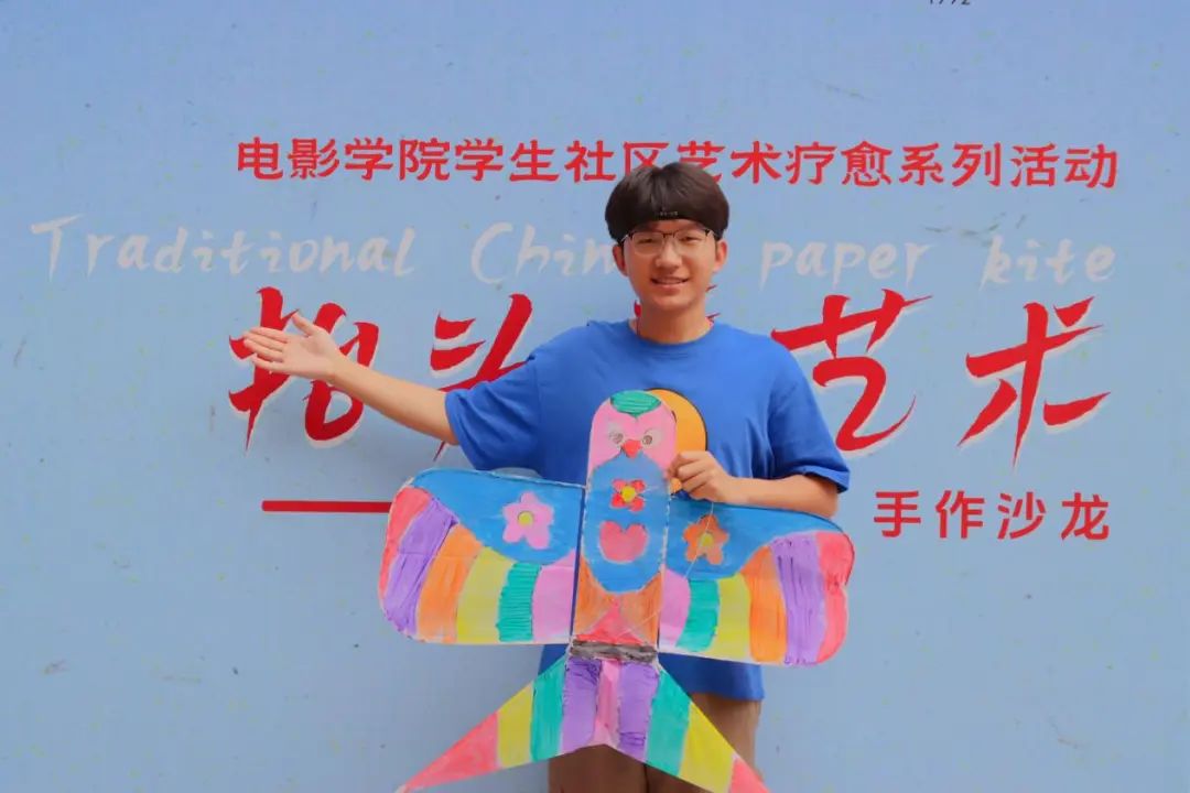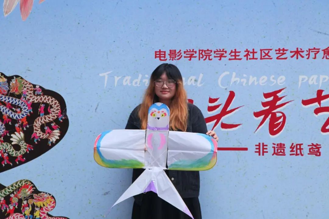此次活动于世祥副书记和王艺霖处长也来到现场深切感受到同学们对艺术疗愈系列活动深切的向往与热爱,支持鼓励大家在传统手工创作中提升专业技能、推动非遗文化的传承与交流。活动以“纸鸢”为核心意象,通过“抬头看”这一动作,生动展现了同学们对传统文化怀揣的憧憬与热情。