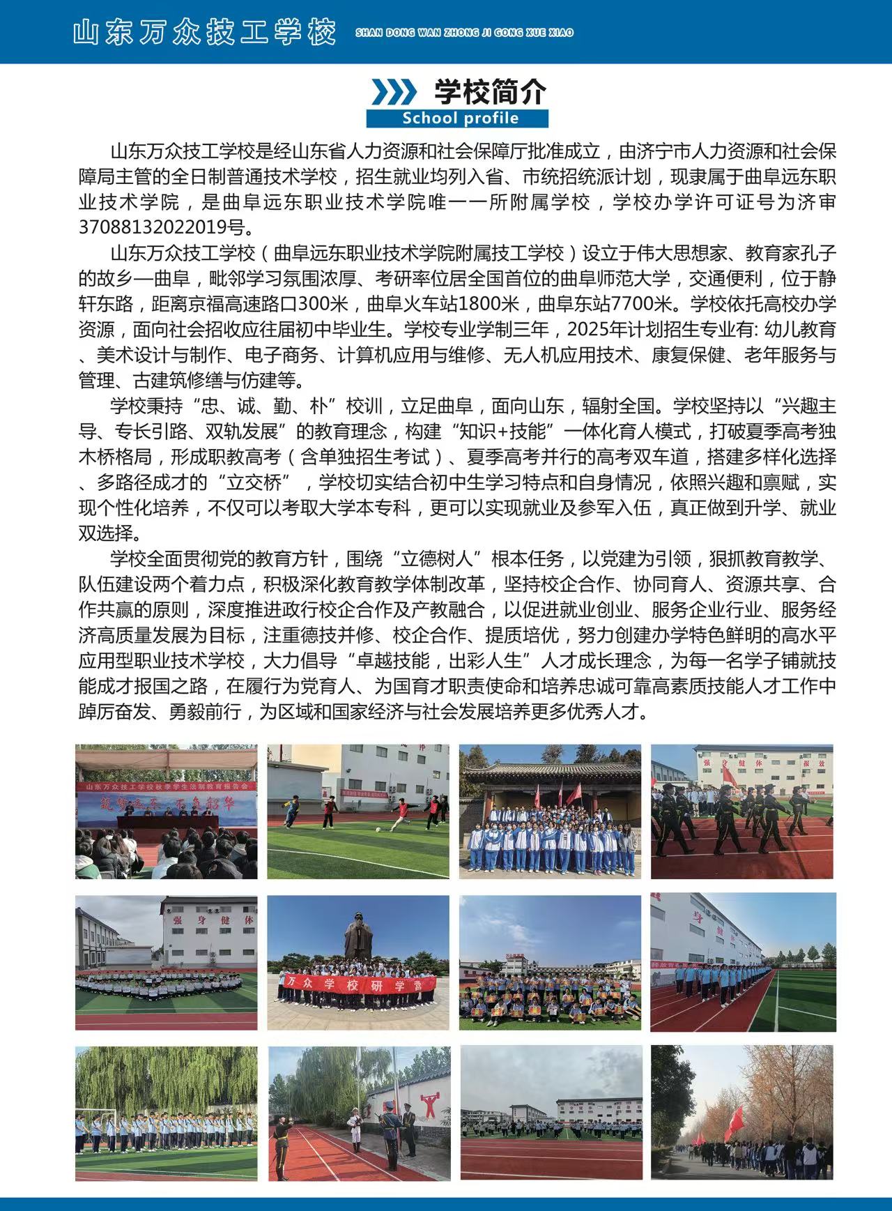 山东万众技工学校(曲阜远东职业技术学院附属技工学校)2025年招生简章