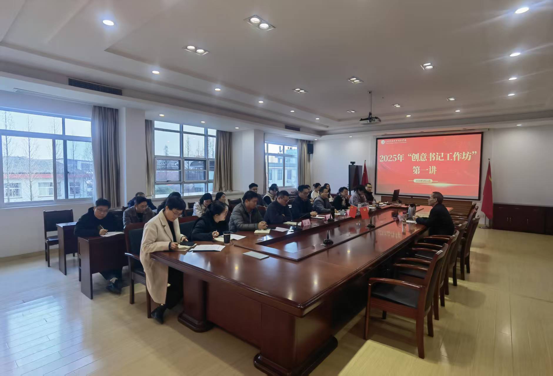 3月11日下午,2025年“创意书记工作坊”正式开讲。本次讲座特邀常州机电职业技术学院党委委员、党委组织部部长彭银年教授为我校全体党务工作者作专题讲座。校党委委员、纪委委员、党委工作部门负责人、各党支部书记、组织员、团委书记以及团总支书记参加本次讲座。讲座由校党委副书记许佳伟主持。