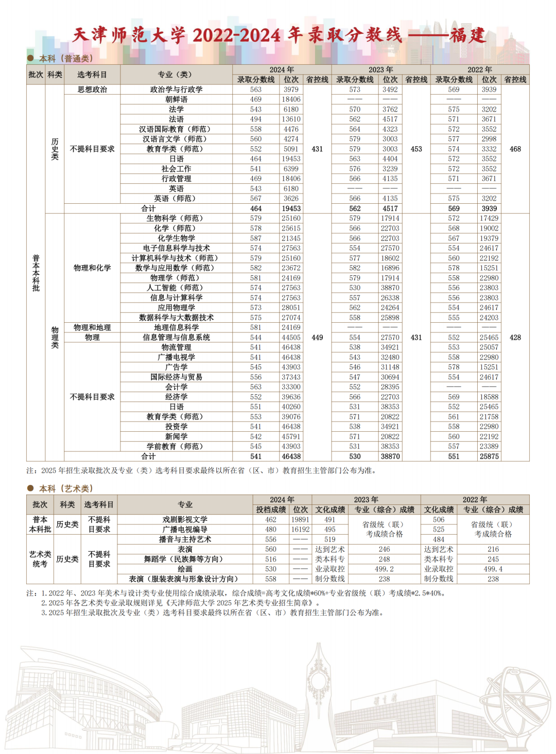 光阴荏苒,霜凋夏绿。2025年高考即将到来,为帮助广大考生更好的了解和报考天津师范大学,我校将陆续发布各省市2022年-2024年的录取情况统计表。敬请考生及家长关注。