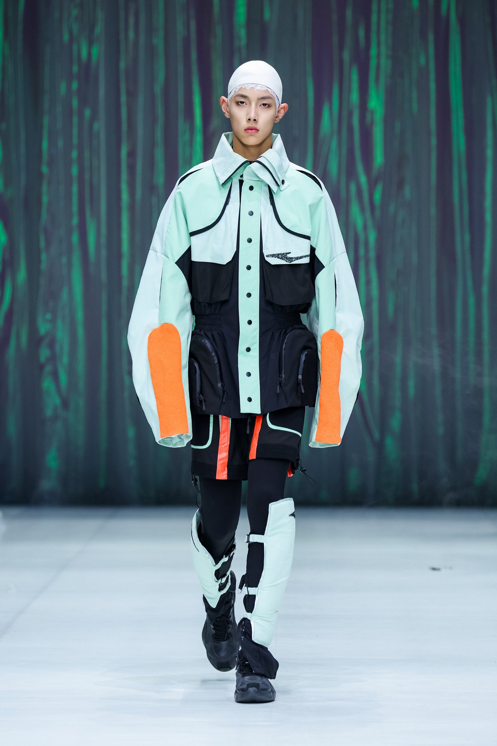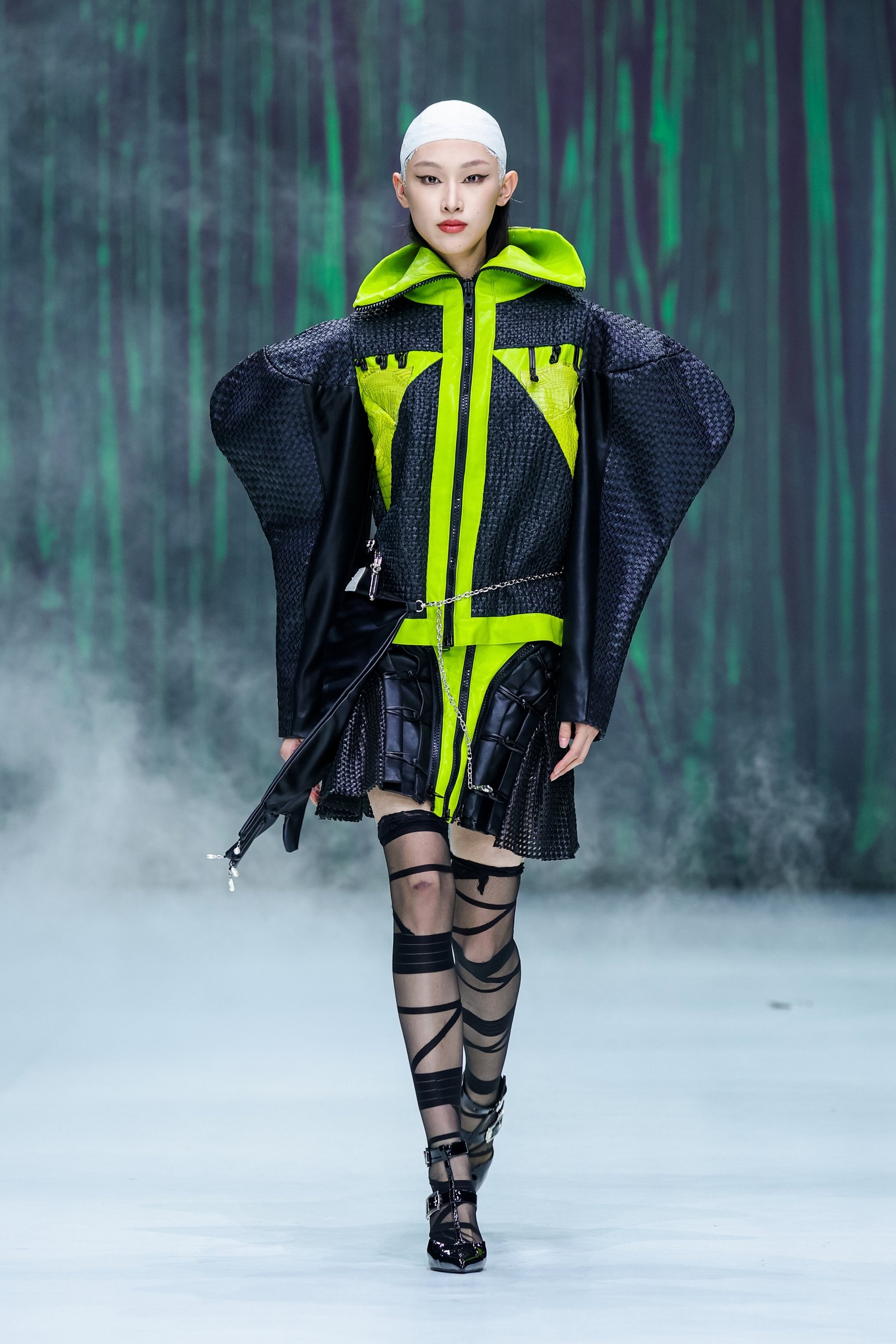 在工艺革新层面,数控热压成型技术赋予环保面料以立体肌理,使服装成为可穿戴的“雕塑艺术”;再生尼龙与皮革的混合重组,让服装成为动态的活力载体。此外,可拆卸模块设计于细节处实现了服装的功能性转化,这种对功能性的极致追求,恰是江西服装学院“以衣载道”设计哲学的具象化表达。