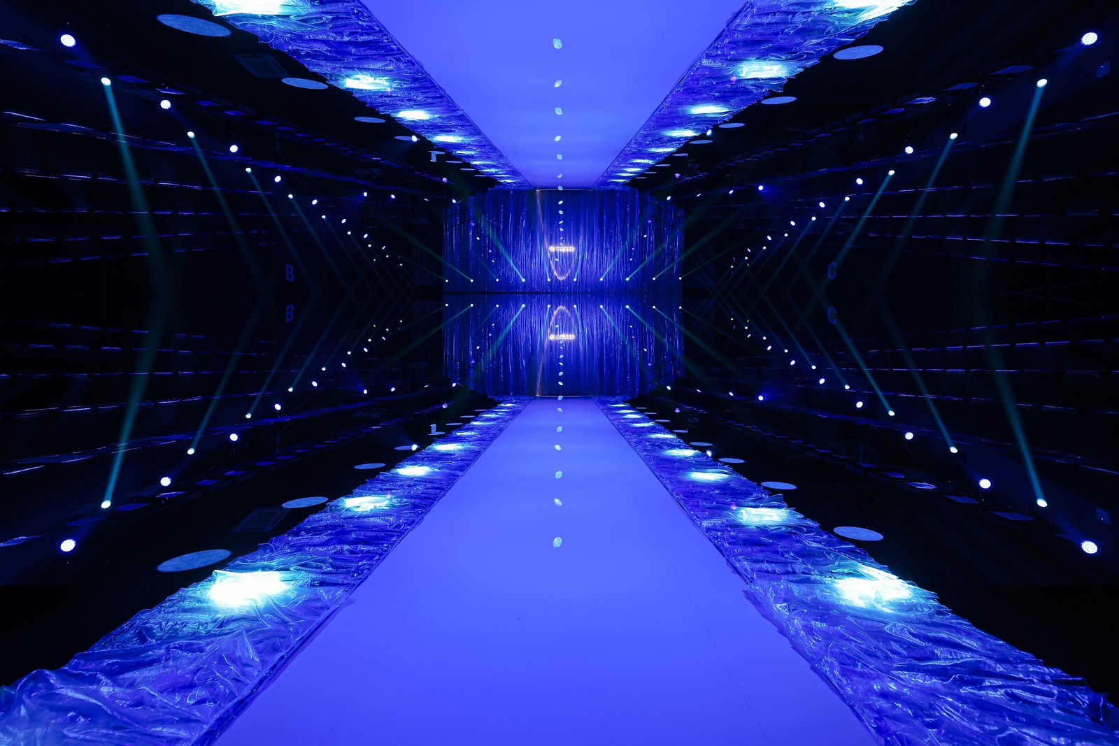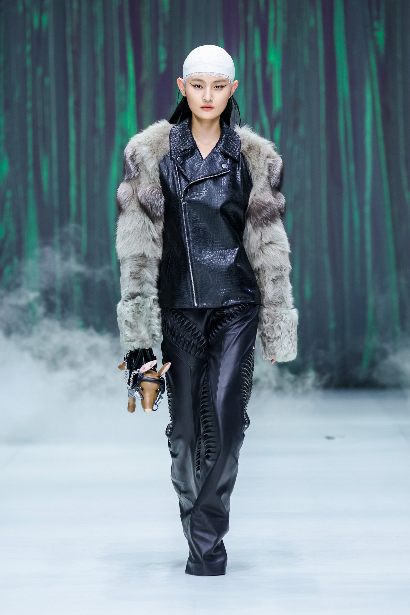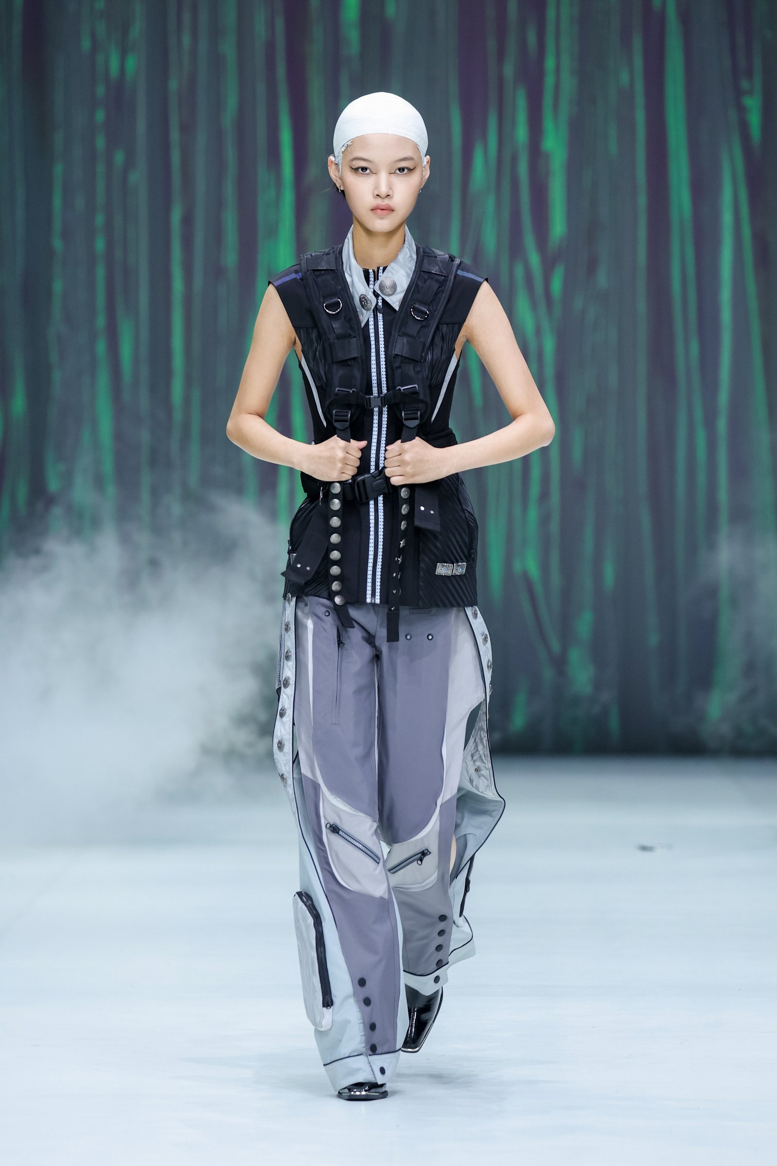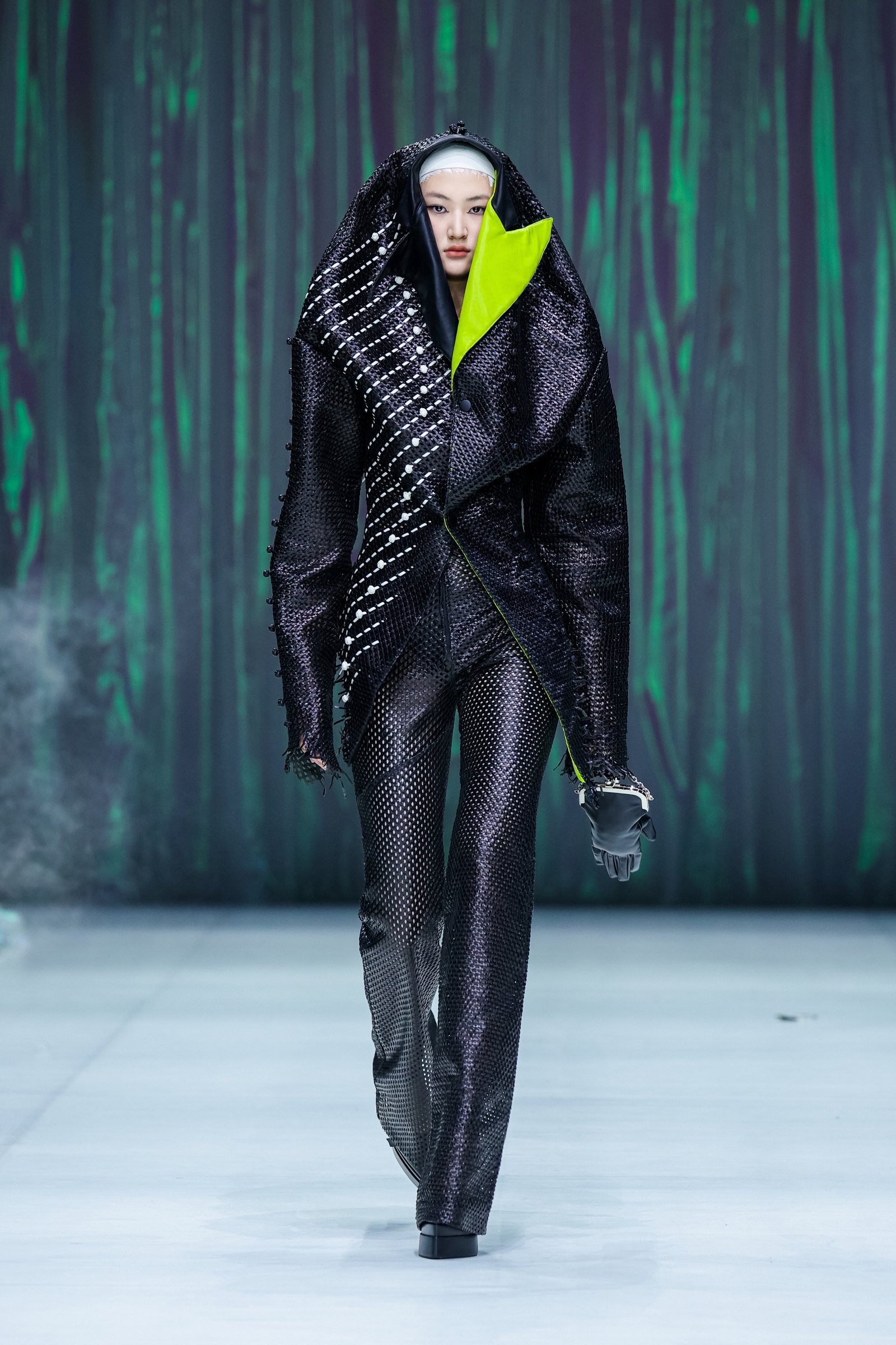 在本场发布秀中以曲线与机械结构的金属色彩交织为视觉母题的设计作品,将工业文明的精密感与生命体的律动感进行重组,既呼应了未来主义的冷峻,又暗合东方“天人合一”的哲学理念。