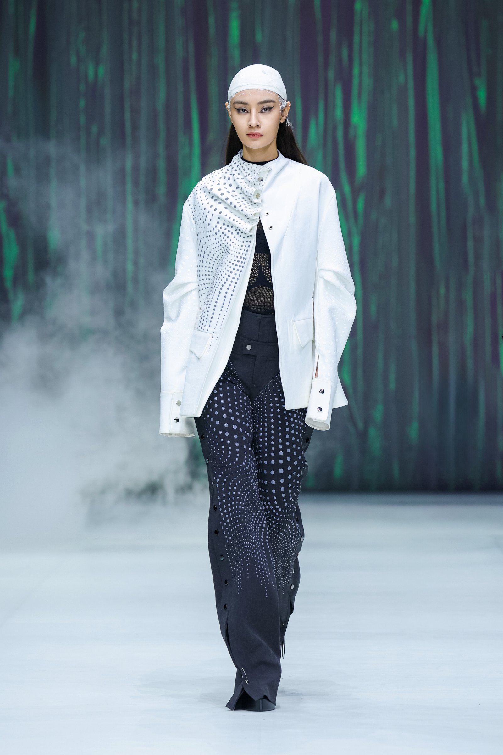 “本次秀演是学校深化教育教学改革、同学们四年青春努力的成果汇报。江服学子们以'VIGOR’之名将锋芒织入经纬,作品中体现出东方匠心与赛博格美学的有机融合,呈现出结构创新与可持续时尚的深度思维,创造出青春活力与想象空间的未来语境。”江西服装学院校长薛家宝表示,“VIGOR”主题所蕴含的青春活力与未来张力,在本次发布秀中得到了立体化呈现。