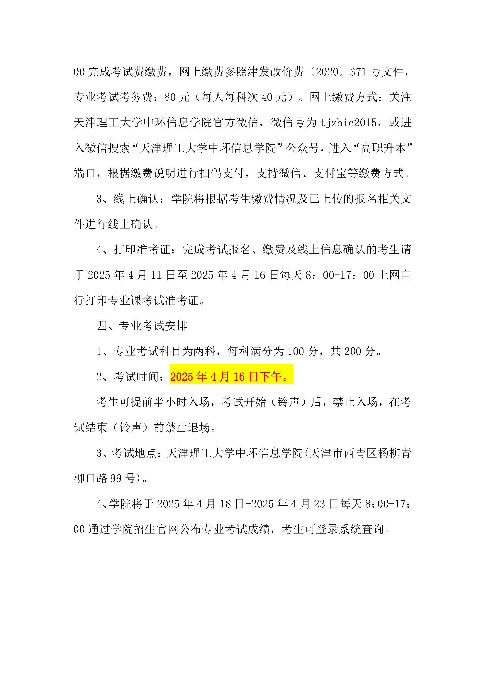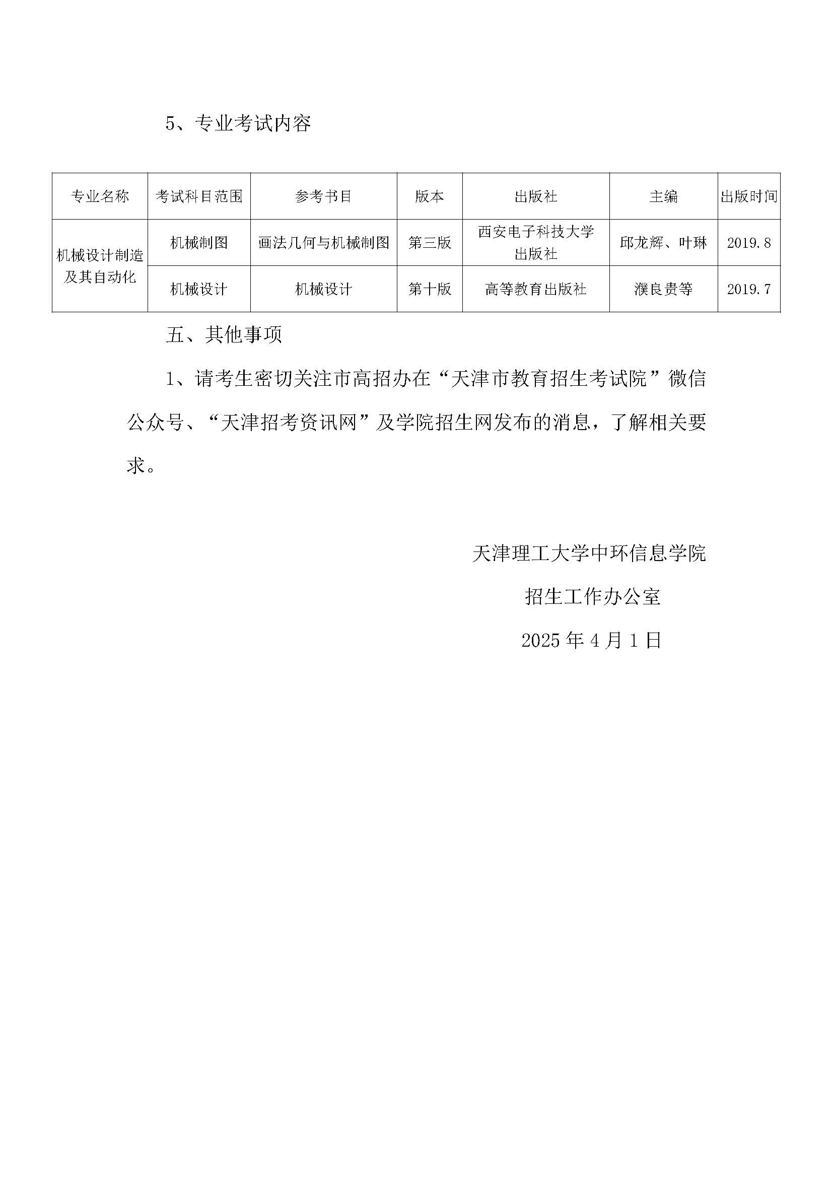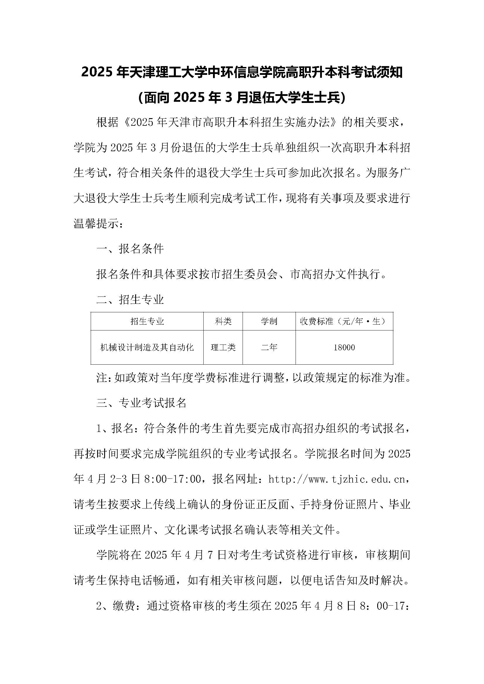 天津理工大学中环信息学院2025年退役大学生士兵高职升本科专业考试须知