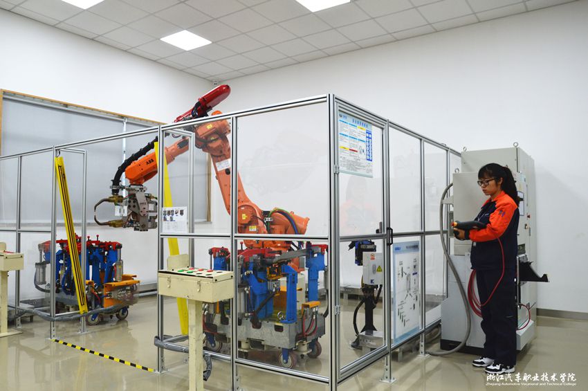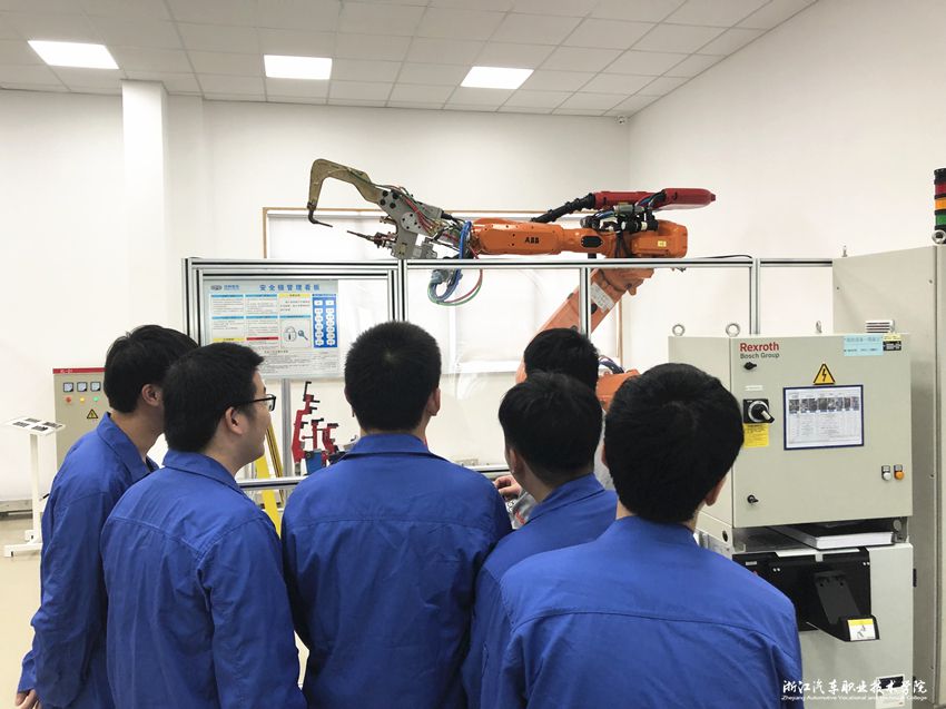 工业机器人的应用推动着工业生产方式由“制造”向“智造”转变。汽车行业目前仍是中国机器人市场的最大客户,占中国机器人运转数量的40%左右。我们开设的工业机器人技术专业是为汽车生产领域培养高素质技术技能型人才。人才培养目标 工业机器人技术专业培养能够在汽车制造行业,从事工业机器人操作编程、安装调试、维护维修以及机器人工作站系统集成和技术服务等方面的高素质技术技能型人才。主干课程 按照汽车生产线的岗位职责以及工业机器人技术规范,开设以核心职业能力培养为主导的课程,主要课程有工业机器人技术基础、工业机器人应用编程、工业机器人工作站系统集成、电机与拖动技术、单片机技术、传感器与检测技术、电气控制与PLC、电力电子与变频技术、C语言程序设计、焊接技术与设备等。师资队伍 从2015年正式招生开始,本专业一直遵循服务汽车生产、突出专业人才培养的发展理念,全力打造胜任工业机器人应用、维修和技术服务及教学能力的双师型教师队伍,现有专任教师15人,其中教授1人、高级技师1人、讲师5人、双师型教师9人。教学资源 本专业依托吉利,引企入校,在校内建有吉利内部最先进的工业机器人实训基地建,真正做到了紧密联系生产实际,工学结合,产教融合。实训基地建有工业机器人焊接工作站和工业机器人搬运工作站,可进行机器人终端操作、工艺标准化技能、工装保养与维护、车身零件质量识别、生产安全等方面的教学实训。