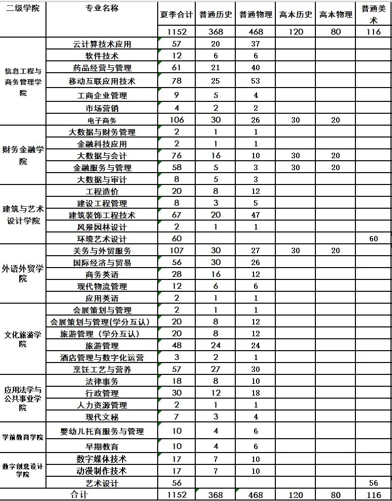 和2024年夏季招生计划表