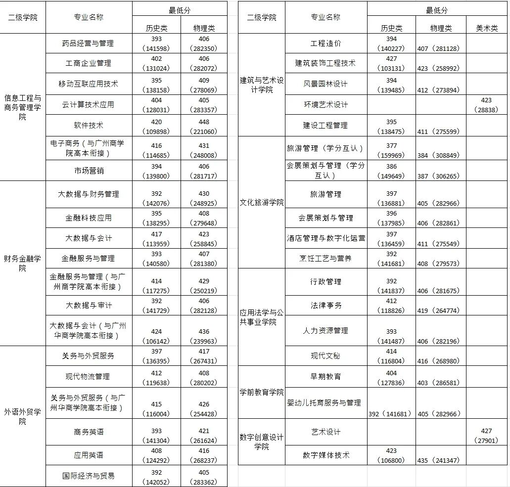 2023年夏季高考录取分数线以及最低排位