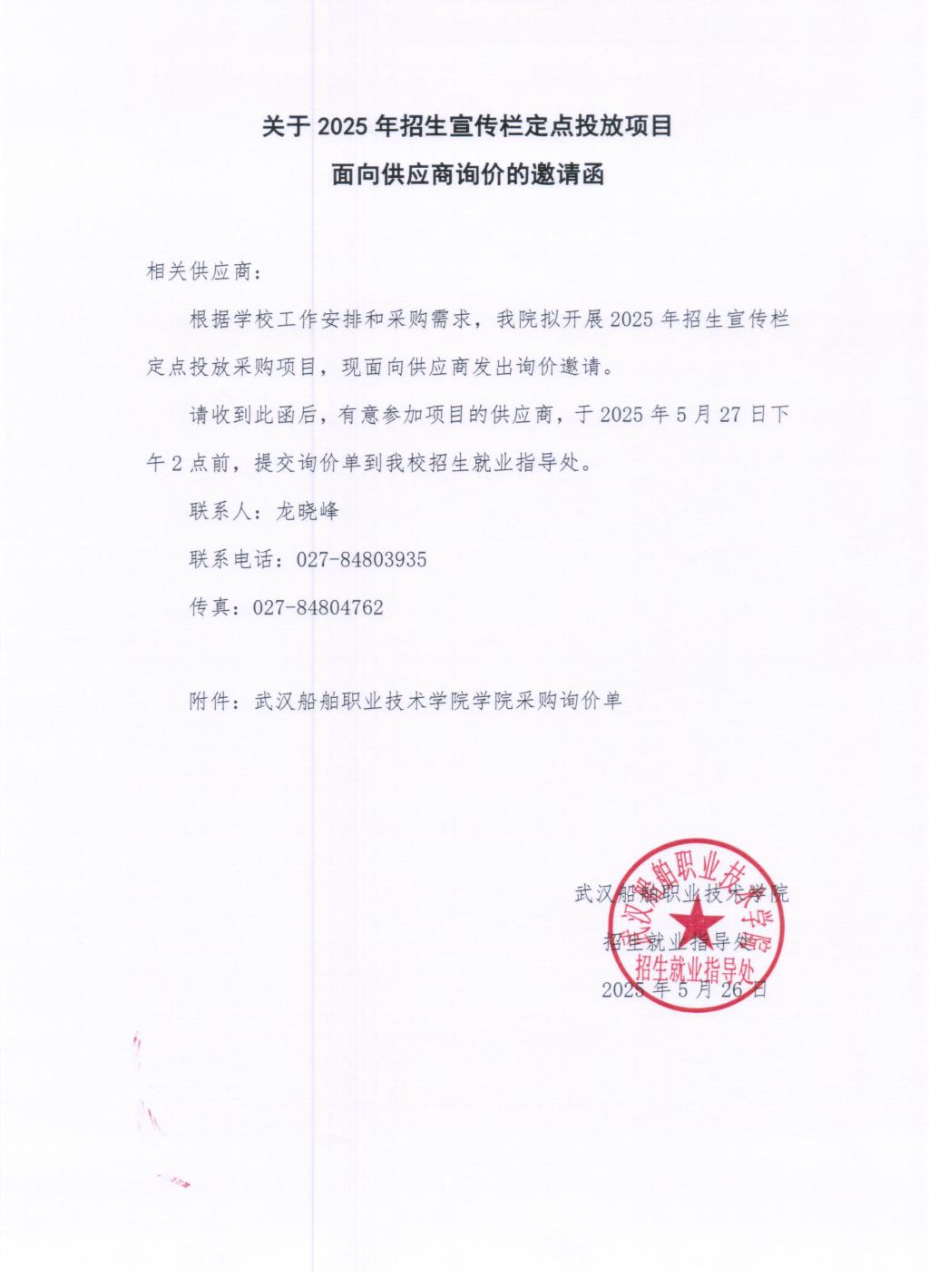关于2025年招生宣传栏定点投放项目面向供应商询价的邀请函
