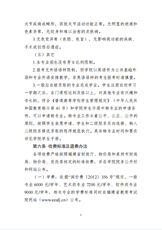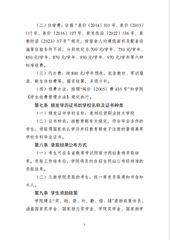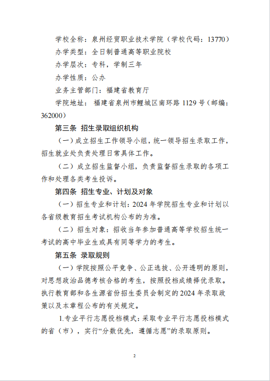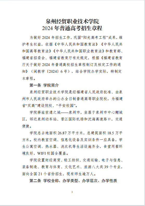 泉州经贸职业技术学院2024年普通高考招生章程