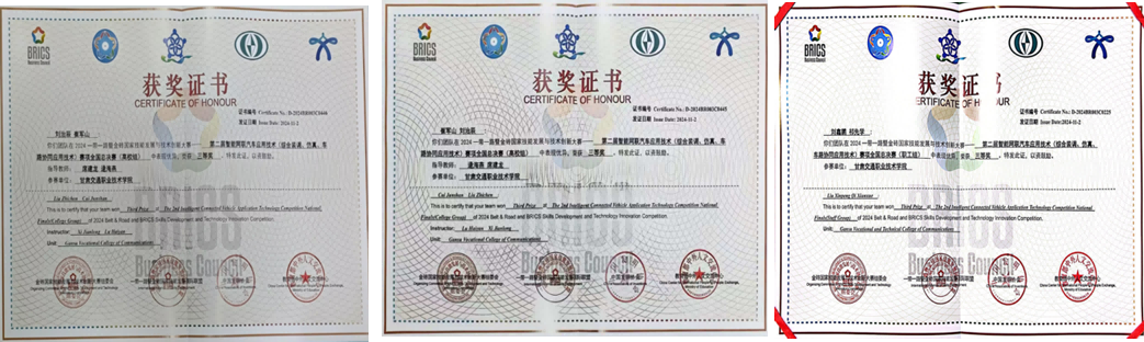 国家级现代学徒制试点专业——汽车制造与试验技术专业国家级协同创新中心——汽车维修技术协同创新中心国家级技能型紧缺人才培养学校——汽车检测与维修技术专业国家级职业教育集团常务理事单位——汽车检测与维修技术专业中德先进职业教育合作项目首批试点院校汽车(新能源)领域——新能源汽车检测与维修技术专业甘肃省高职高专专业组组长单位——汽车检测与维修技术专业甘肃省教学团队——汽车运用技术专业教学团队甘肃中德学院联盟院校甘肃省省级标准化先进党支部新时代甘肃省高等院校党建“标杆院系”交通运输部学科带头人1人省级教学名师2人省级“教学园丁奖”获得者2人省级“青年教师成才奖”获得者1人省级技术标兵3人全省优秀党务工作者1人全省高校科研、党建双带头人1人国家级大赛裁判5人Part.4
