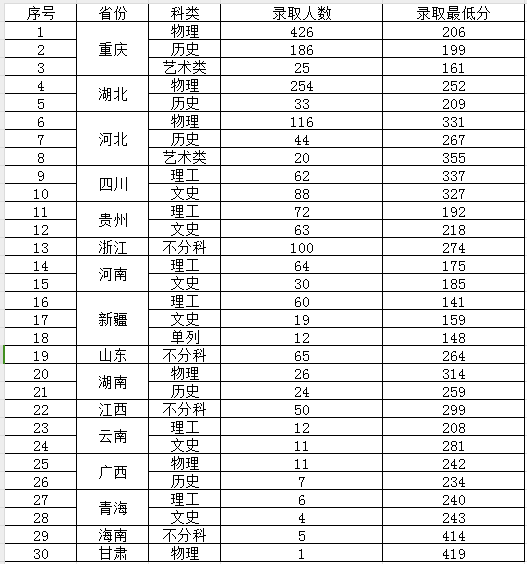 重庆经贸职业学院2024年秋季统招录取人数及最低分公示