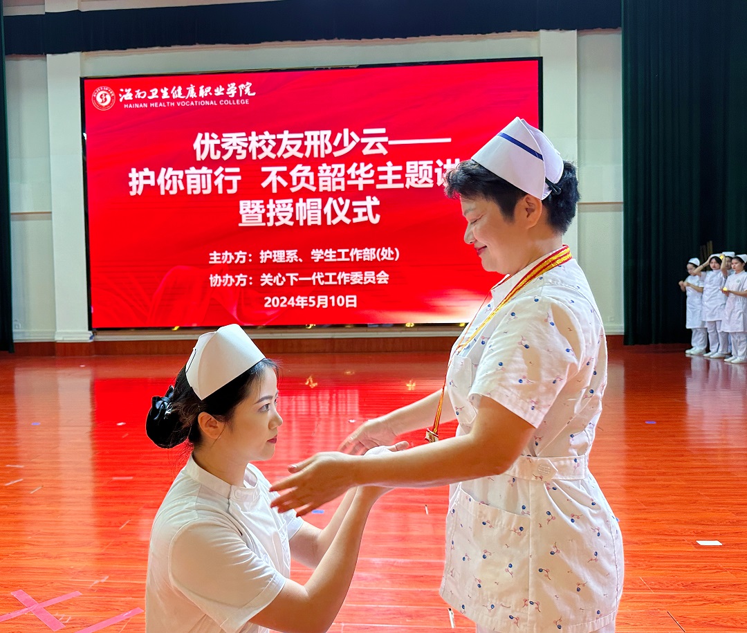 我校1995届优秀毕业生,第49届弗洛伦斯南丁格尔奖章获得者邢少云为护理专业学生授帽