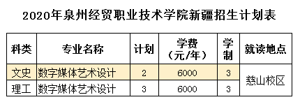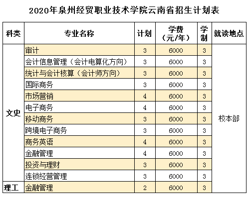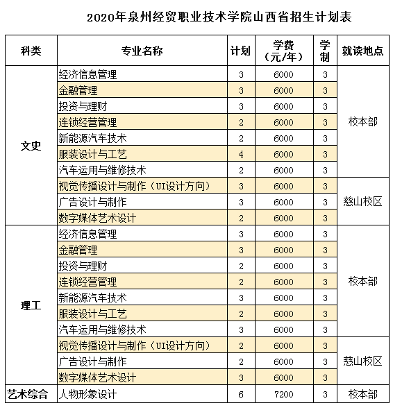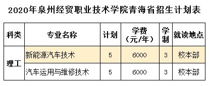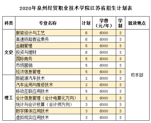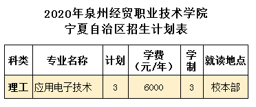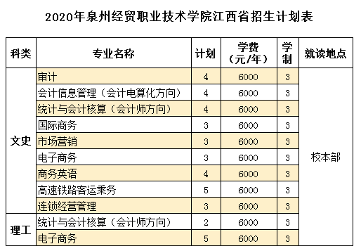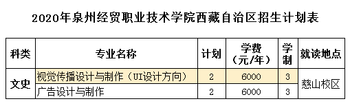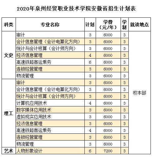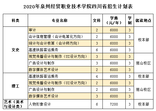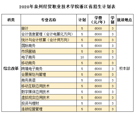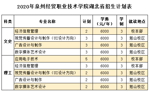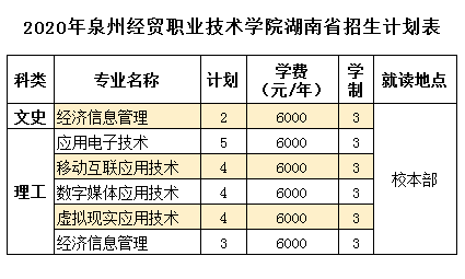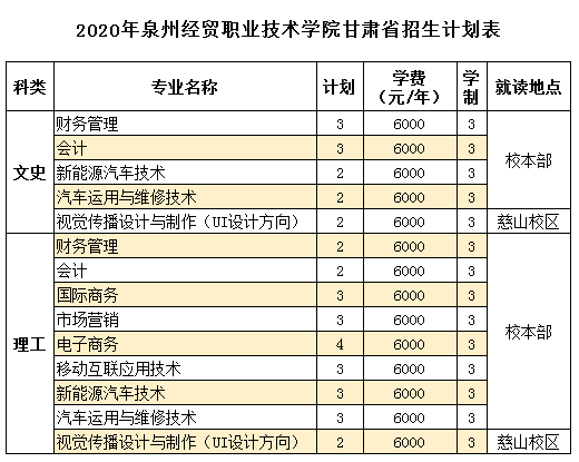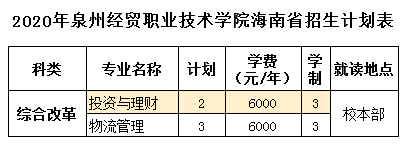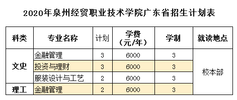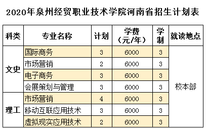 2020年泉州经贸职业技术学院省外普通高考专科批招生计划表
