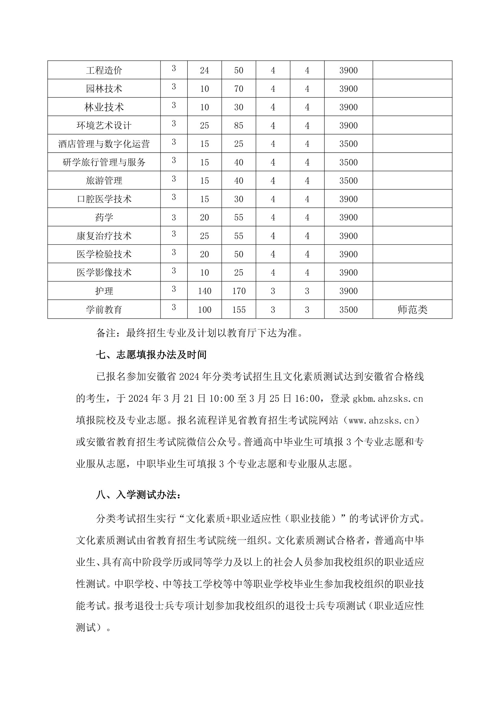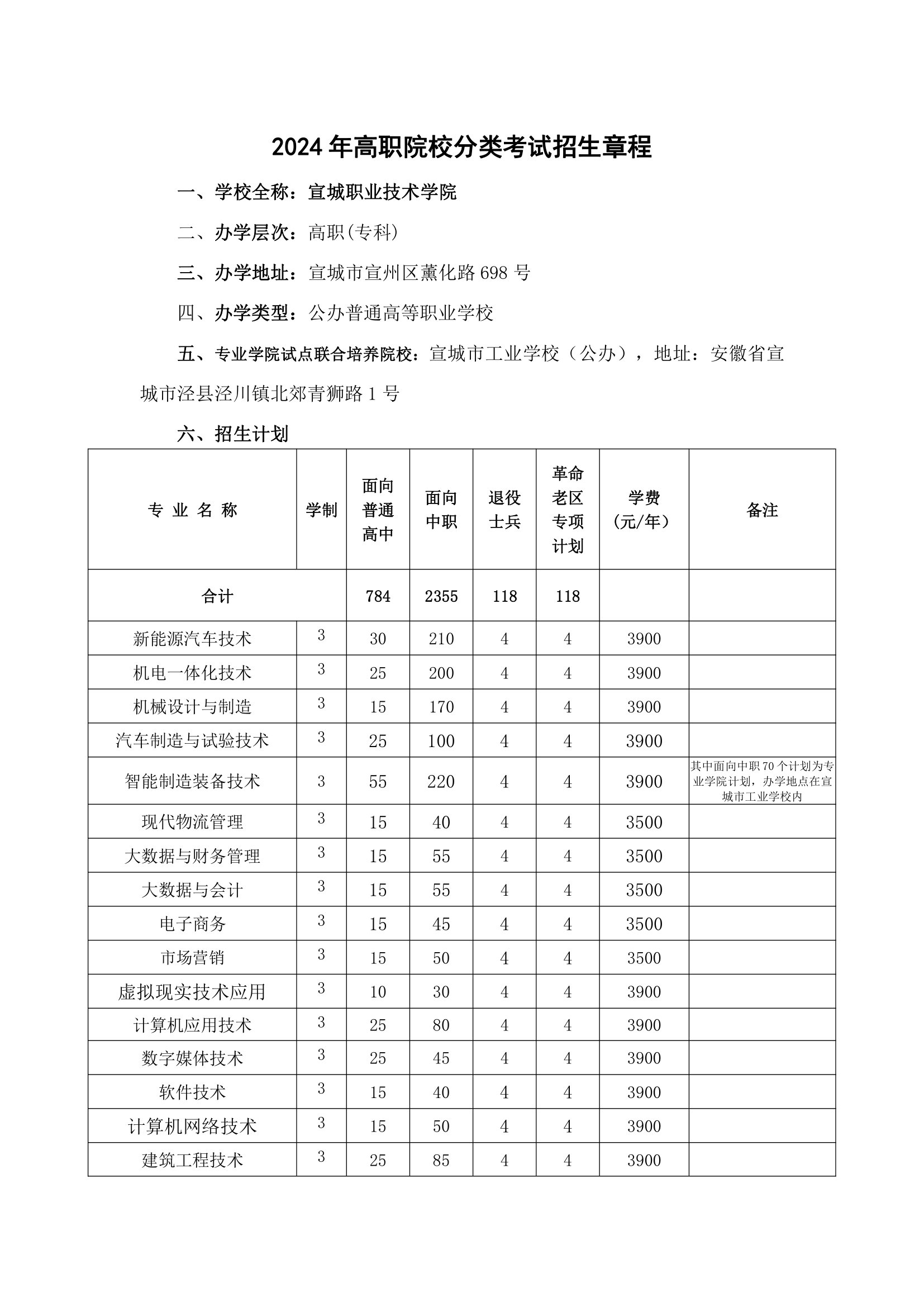 2024年分类考试招生章程