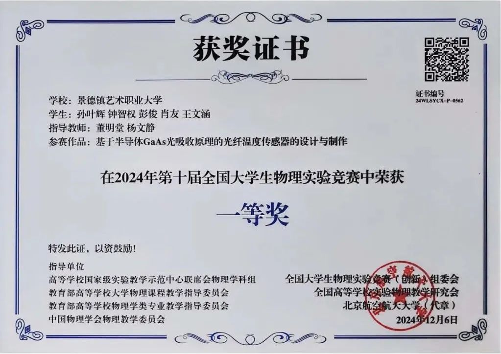 部分学生获奖证书