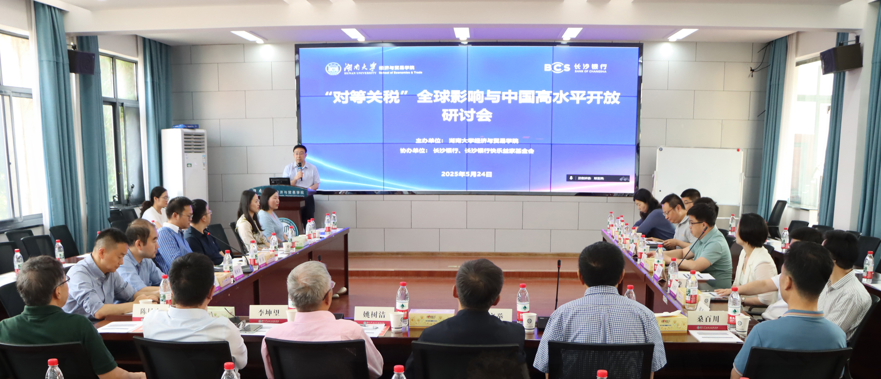 5月24日,“对等关税”全球影响与中国高水平开放研讨会在湖南大学经济与贸易学院举行。作为“长沙银行·湖南大学2025岳麓经贸论坛”的首场活动,会议围绕“对等关税”的理论逻辑、国际经贸规则重构、中国制度型开放战略等核心议题展开研讨。湖南大学党委常委、校长助理许和连教授致辞,经济与贸易学院院长祝树金教授主持。