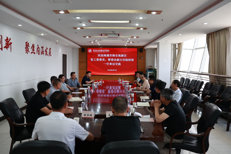6月5日,南通海安高新区党工委委员、管委会副主任陆枳彤率政企校联合代表团莅临我校考察交流产教联合体建设工作。校党委书记席海涛出席,会议由副校长檀祝平主持。