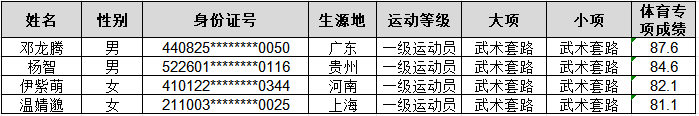 根据教育部有关文件及《三峡大学2025年高水平运动队招生简章》的有关规定,结合我校高水平运动队建设发展的需求,现将体育专项成绩合格学生名单予以公示。按照教育部有关文件要求,拟定结果将上报教育部,并在教育部“阳光高考”平台(http://gaokao.chsi.cn)进行集中公示,最终合格名单以“阳光高考”平台审核公布为准。