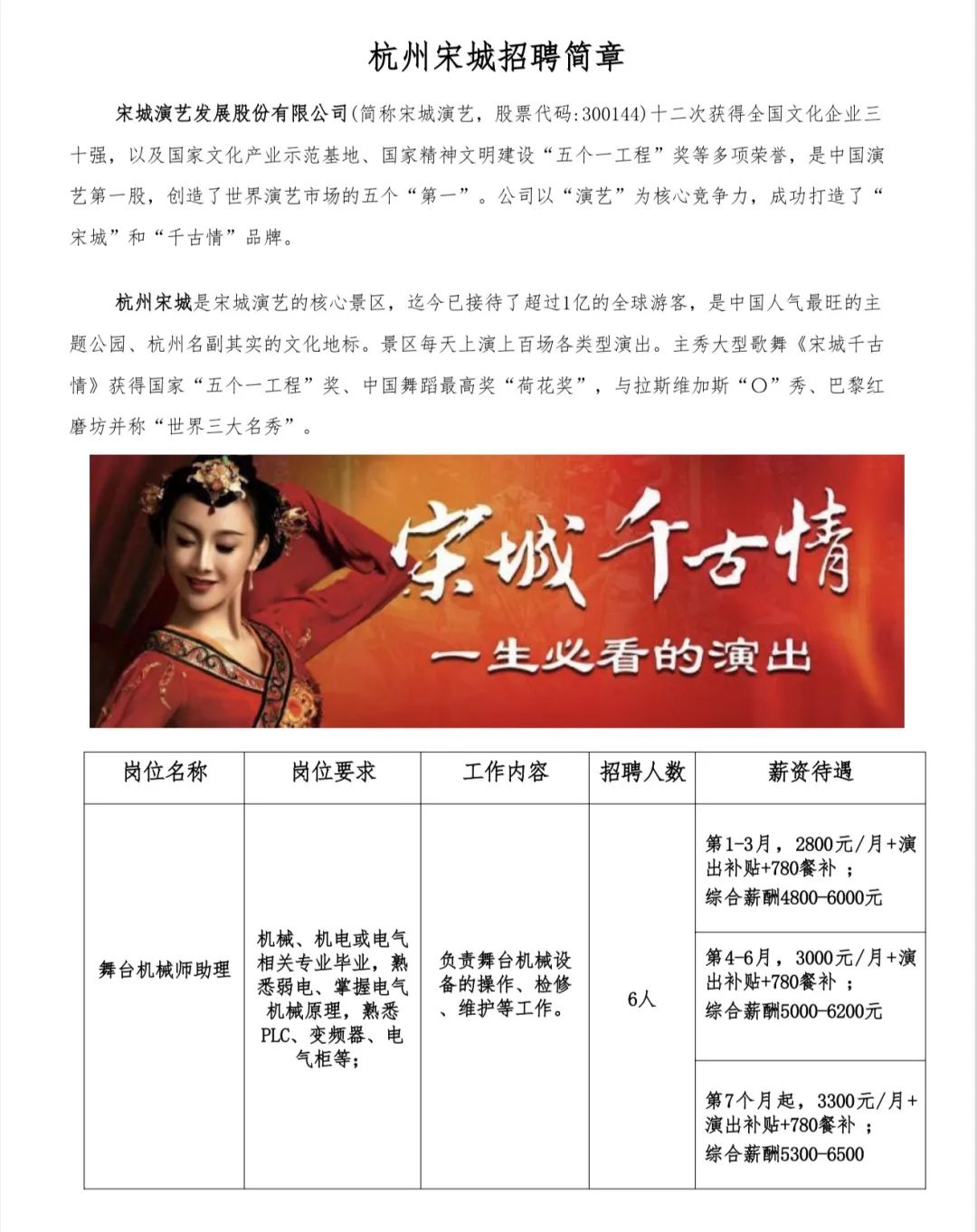 杭州宋城招聘简章