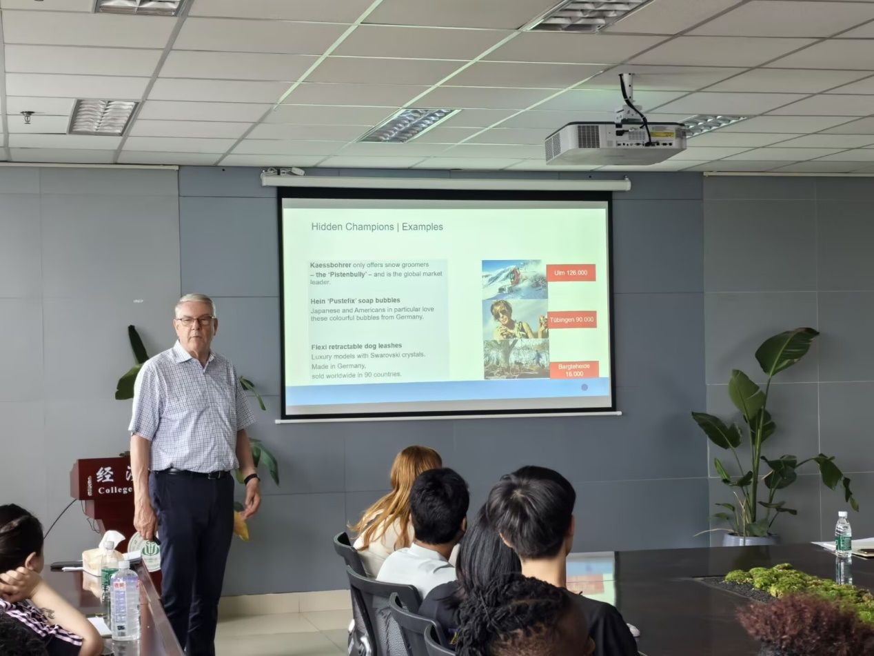 在互动环节,与会师生就中德农业产业化差异、中小企业创新政策适配性等问题与迈克·韦伯博士展开讨论。他结合自身在亚非工业园区的建设项目经验,针对性地解答了相关问题,为师生提供了国际化视角的思考。