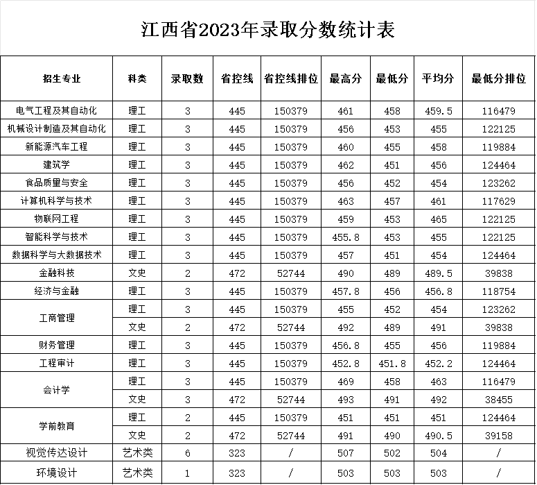 江西省2023年录取分数统计表
