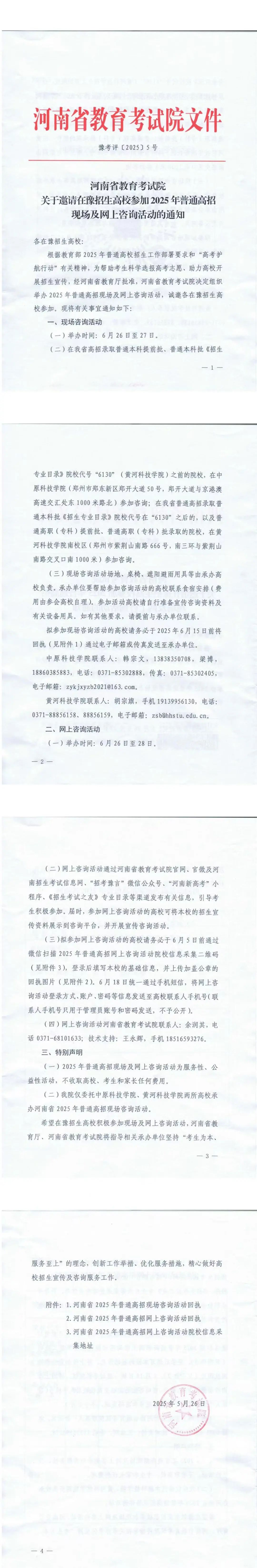 1.河南省2025年普通高招现场咨询活动回执.pdf2.河南省2025年普通高招网上咨询活动回执.pdf3.河南省2025年普通高招网上咨询活动院校信息采集地址.pdf
