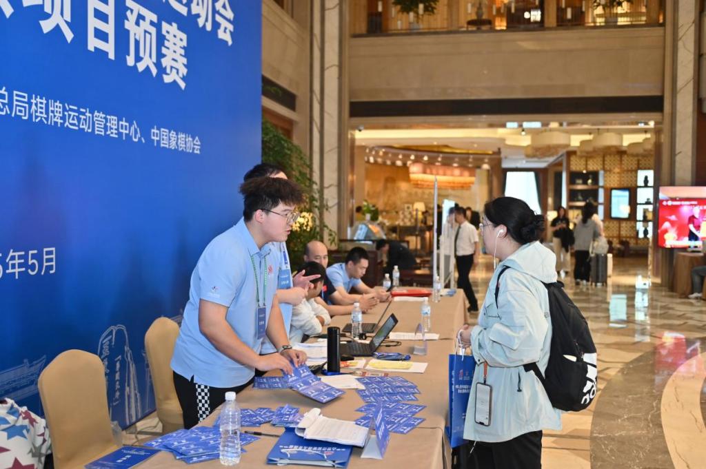 为确保服务质量,所有志愿者均经过严格选拔与系统培训,并精准配置至核心岗位。在参赛者注册报到区,作为棋手接触赛事的“第一站”,志愿者们以亲切的笑容和高效的操作,有条不紊地为全国各地的象棋爱好者办理签到、核发证件与物料,耐心答疑解惑,确保每位参赛者都能便捷开启全运征程。