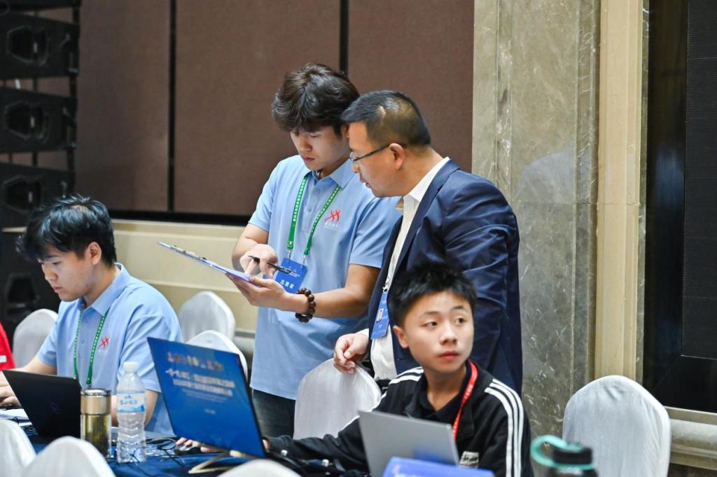在紧张对弈的赛场内,辅助裁判工作的志愿者们化身为“无声的守护者”。他们全神贯注,严谨细致地协助记录对局结果、录入积分、传递关键信息,保障每一份成绩单的准确性与时效性。