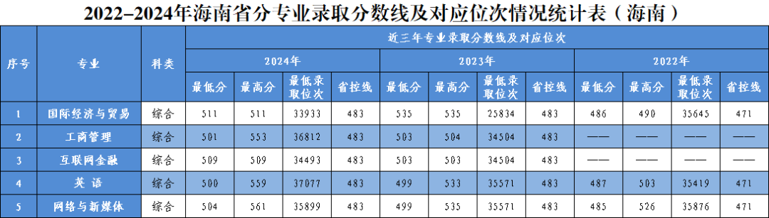 本期带来我校《2022-2024年海南省分专业录取分数线及对应位次情况统计表》。