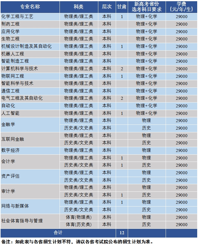沈阳科技学院2025年甘肃省分专业招生计划