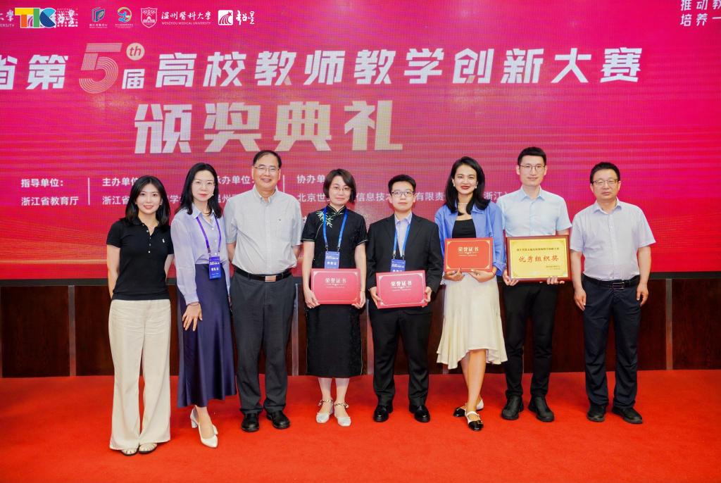 5月24日,浙江省第五届高校教师教学创新大赛决赛在温州落下帷幕。学院6支教师团队获一等奖1项、二等奖2项、三等奖3项,学院总成绩名列全省高校前列,获“优秀组织奖”,创历史最佳。