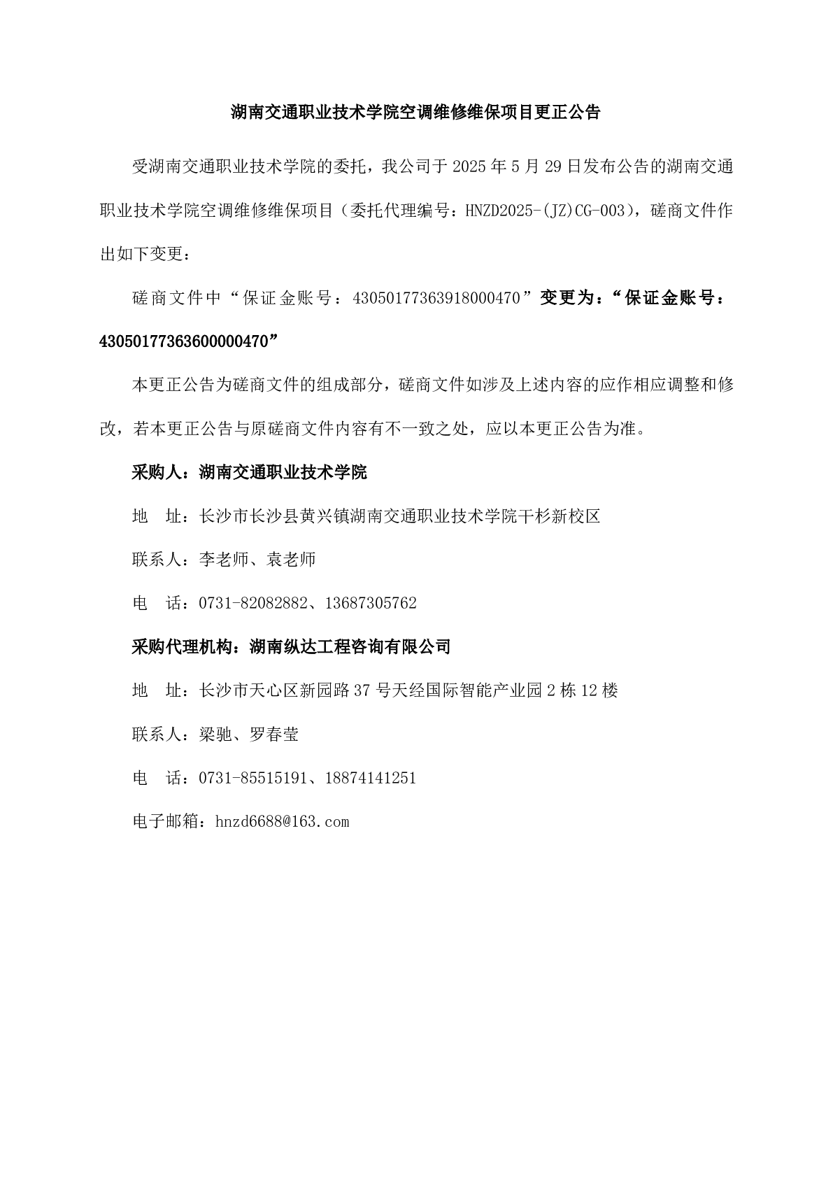 南交通职业技术学院空调维修维保项目更正公告